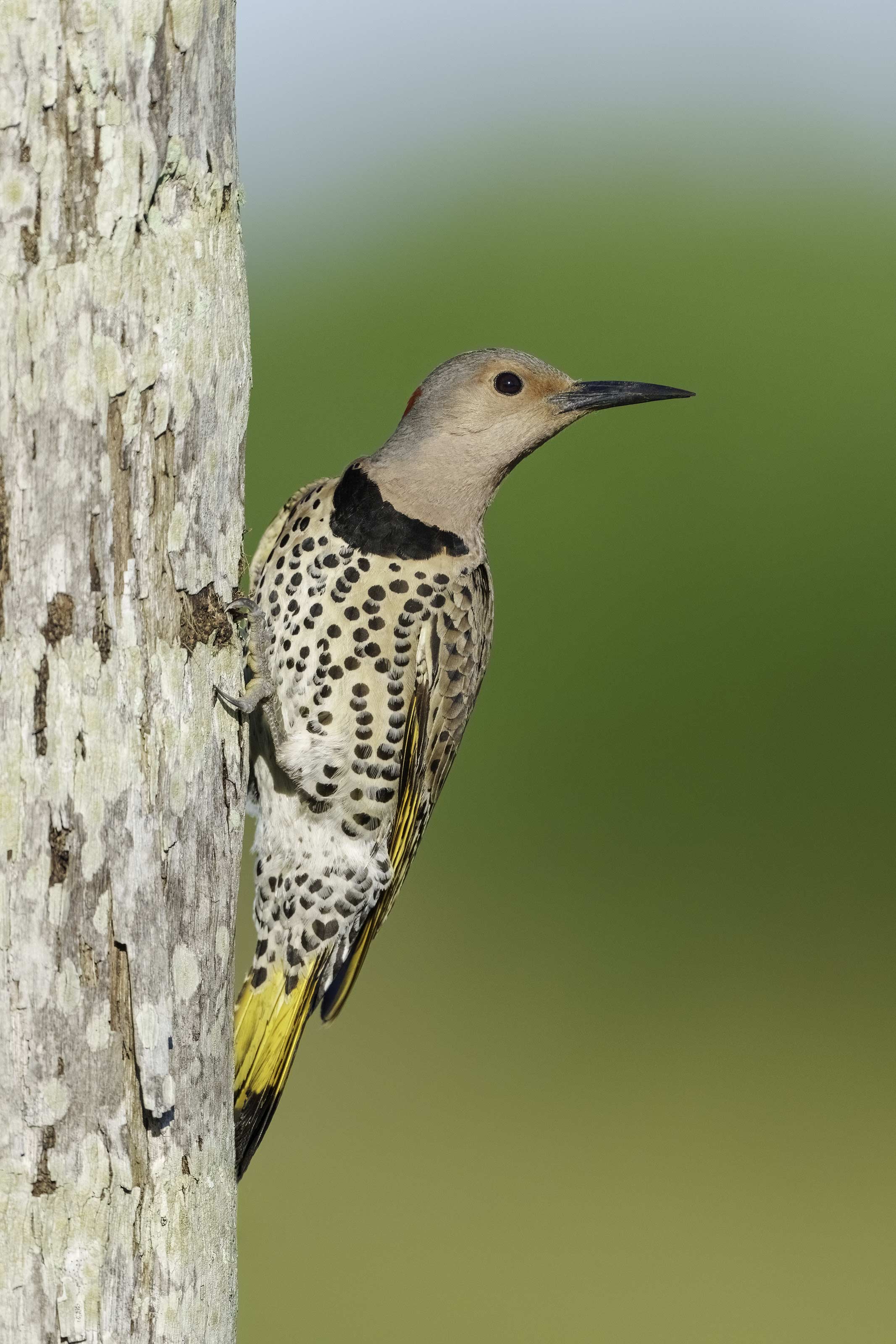 Regular readers know that I was excited in March when a pair of Red-bellied Woodpeckers were investigating two eye-level nest-holes in a six foot tall Cabbage Palm stump just a few feet from the road and right down morning sun angle!. That never panned out as the birds eventually selected another nest site. Last week I noticed that the lower of the two cavities had being enlarged. So, paying a bit more attention, I noticed a pair of flickers hanging around. With David in the backseat on Friday morning, we had our first good chances and paid them off with several nice images.