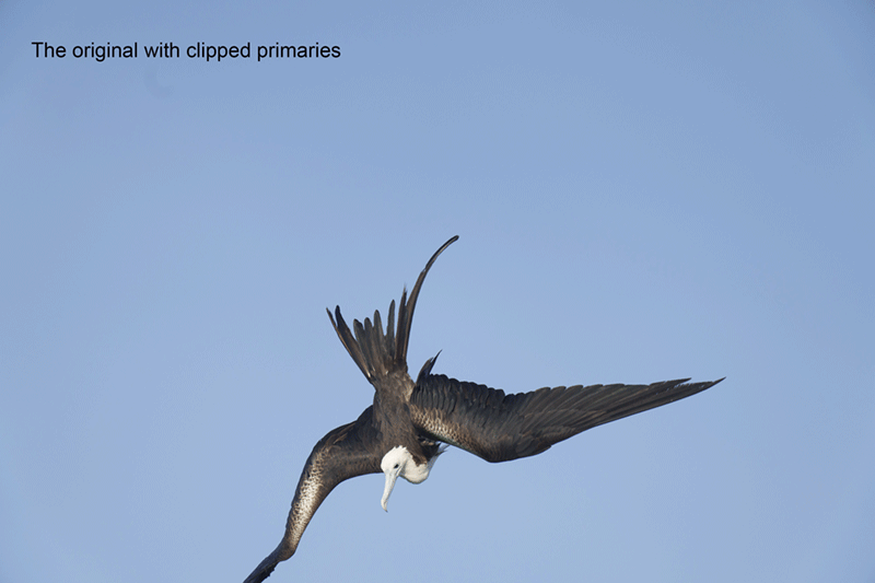 When you clip a wing and there is no source material around you can often use the Clone Stamp Tool to do the repair.