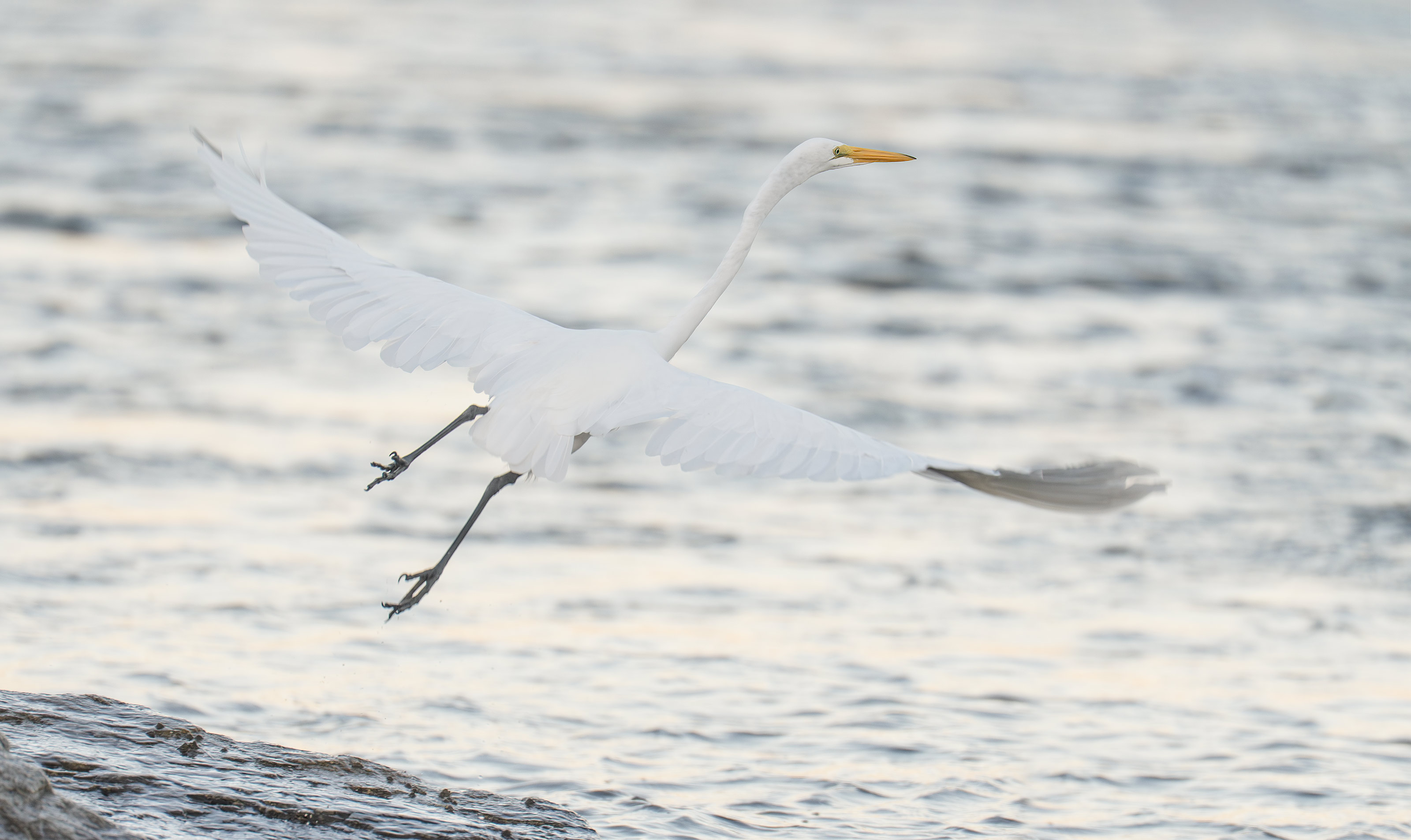 Red was making images of this young Great Egret working to place the bird on the left side of the frame. When it took flight, he panned with the bird and created several images despite the fact that his shutter speed was theoretically too slow for making a sharp flight image. But his accurate panning rate yielded a sharp image.