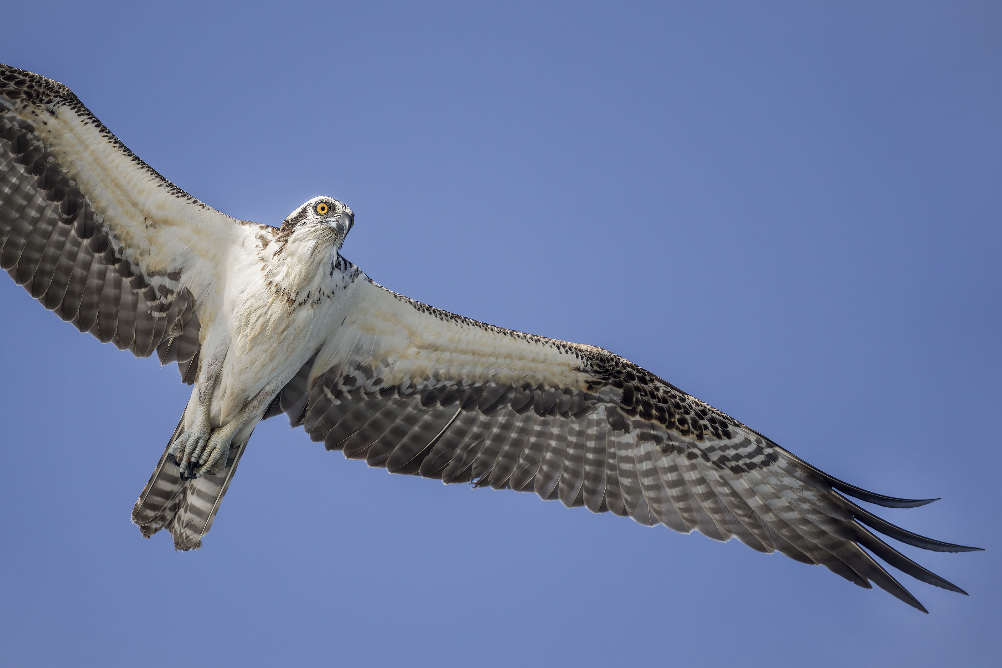 This image was created on 24 October 2025 by yours truly while leading a Sebastian Inlet Ospreys and More Extended IPT. Standing at full height, I used the hand held Sony FE 300mm f/2.8 GM OSS Lens (Sony E) with the Sony FE 2x Teleconverter and the Latest Greatest Sony Flagship Body, the a1 II Mirrorless Camera. The exposure was determined using Zebra technology with ISO on the thumb wheel. ISO 1000: 1/4,000 sec. at f/5.6 (wide open). RawDigger showed that the exposure was dead solid perfect: AWB at 9:10:14am on a variably sunny morning. Tracking: Zone/AF-C with Bird Eye/Face Detection enabled performed perfectly. Image #3: Osprey juvenile tight flight |