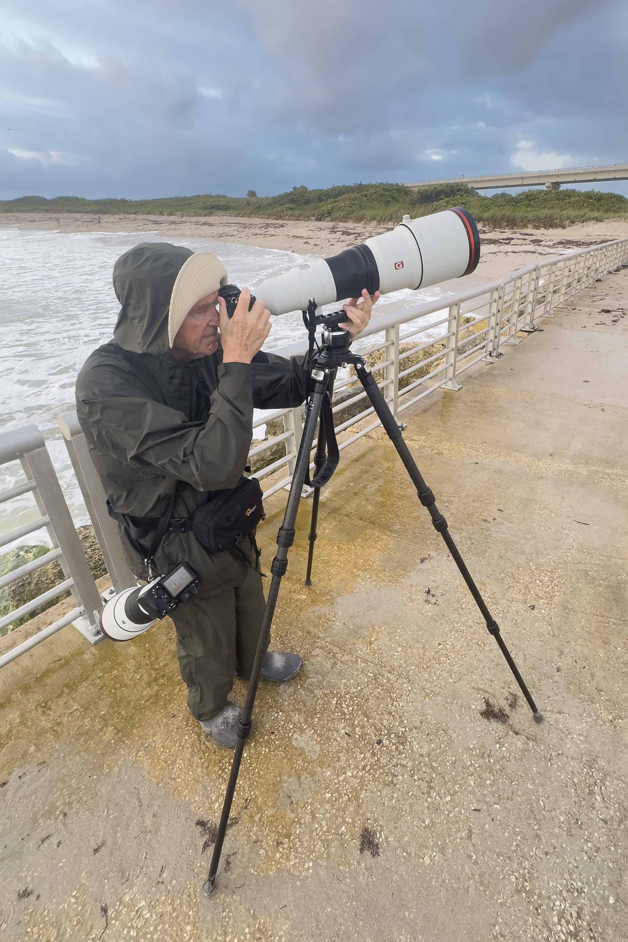 For the past three mornings, however, I have headed out to the South Jetty with the 600mm f/4 lens with a 1.X TC on the tripod (Image #8) and the 300mm f/2.8 GM lens on my shoulder via a Black Rapid Curve Breathe Strap. (Thus the “Two-Gun Pete” reference.) Anyhoo, as things developed, I wound up using the 300mm f/2.8 GM alone, with the 1.4X TC (Image #9), or with the Sony FE 2X teleconverter (Images 3-7 and #9) most of the time. The Sony 300mm f/2.8 is an extremely versatile lens and is the lightest in its class by a mile.