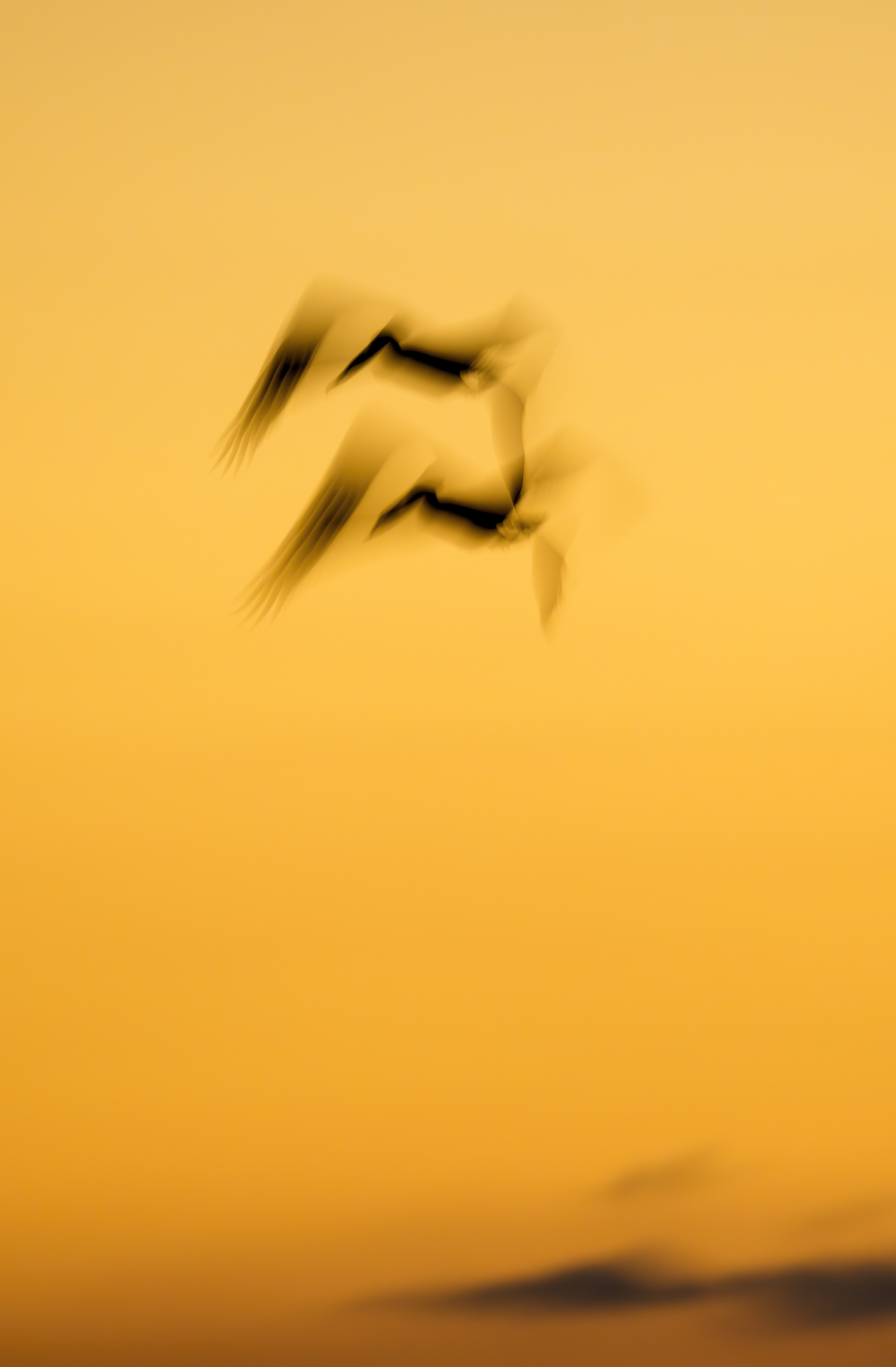 This image was created by yours truly on 19 November 2025 at Sebastian Inlet State Park. Standing at full height, I used the handheld Sony FE 200-600mm f/5.6-6.3 G OSS lens (at 600mm) and the Latest Greatest Flagship Body, the Sony a1 II Mirrorless Camera. The exposure was determined by Zebras with Exposure Compensation (EC) on the thumb wheel. Multi Metering +1.3 stops: AUTO ISO set ISO 2000: 1/15 second at f/6.3 (wide open) in Shutter Priority mode. RawDigger showed that the exposure was perfect. AWB at 6:14:08am 22 minutes before sunrise. Wide/AF-C with Bird-Eye/Face Detection performed perfectly. Click on the image to enjoy a larger, inexplicably sharper high-res version. Image #4: Brown Pelican pre-dawn blur in orange sky |