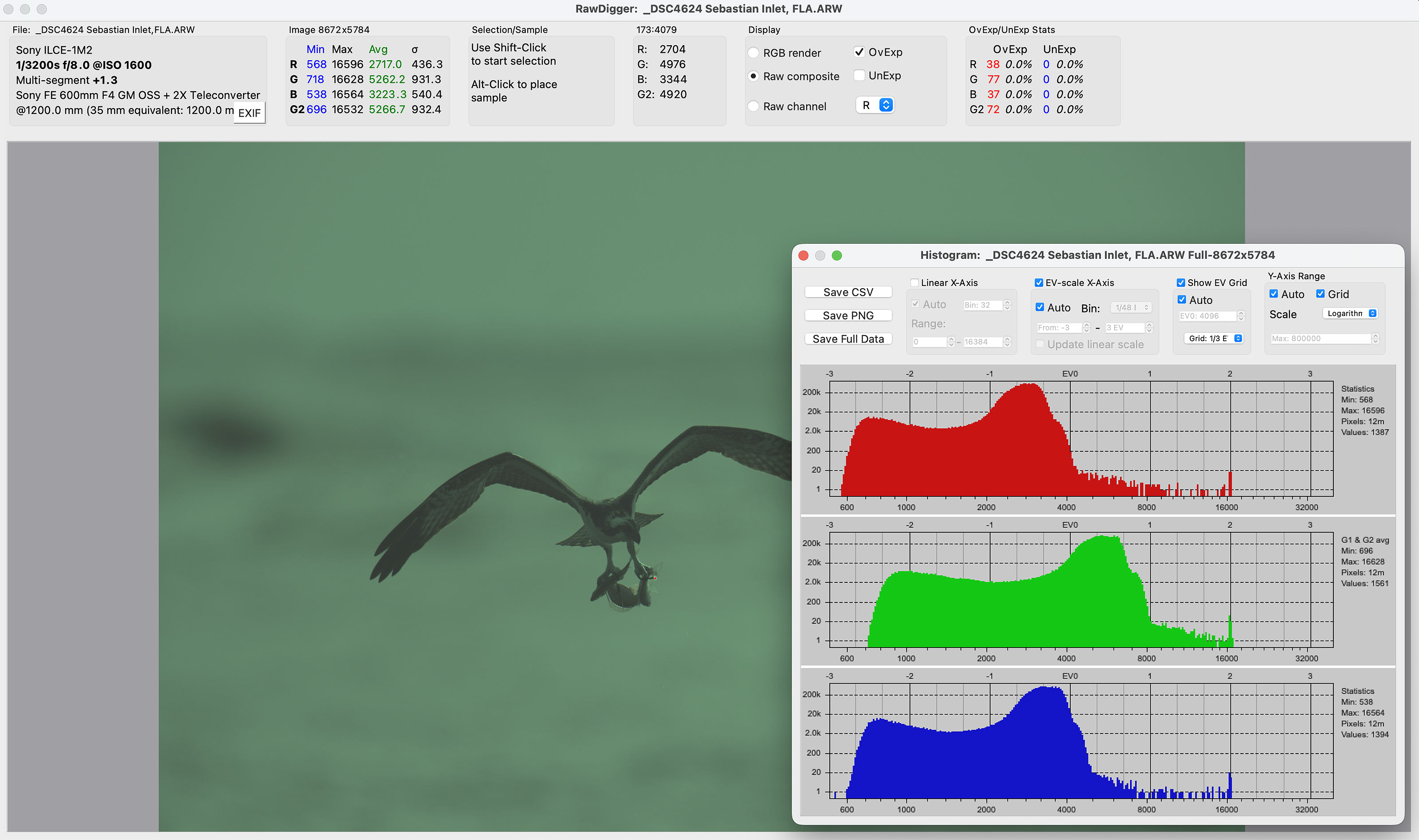 The RawDigger Screen Capture for the Osprey with three fish in its talons image Your browser does not support iFrame. |
