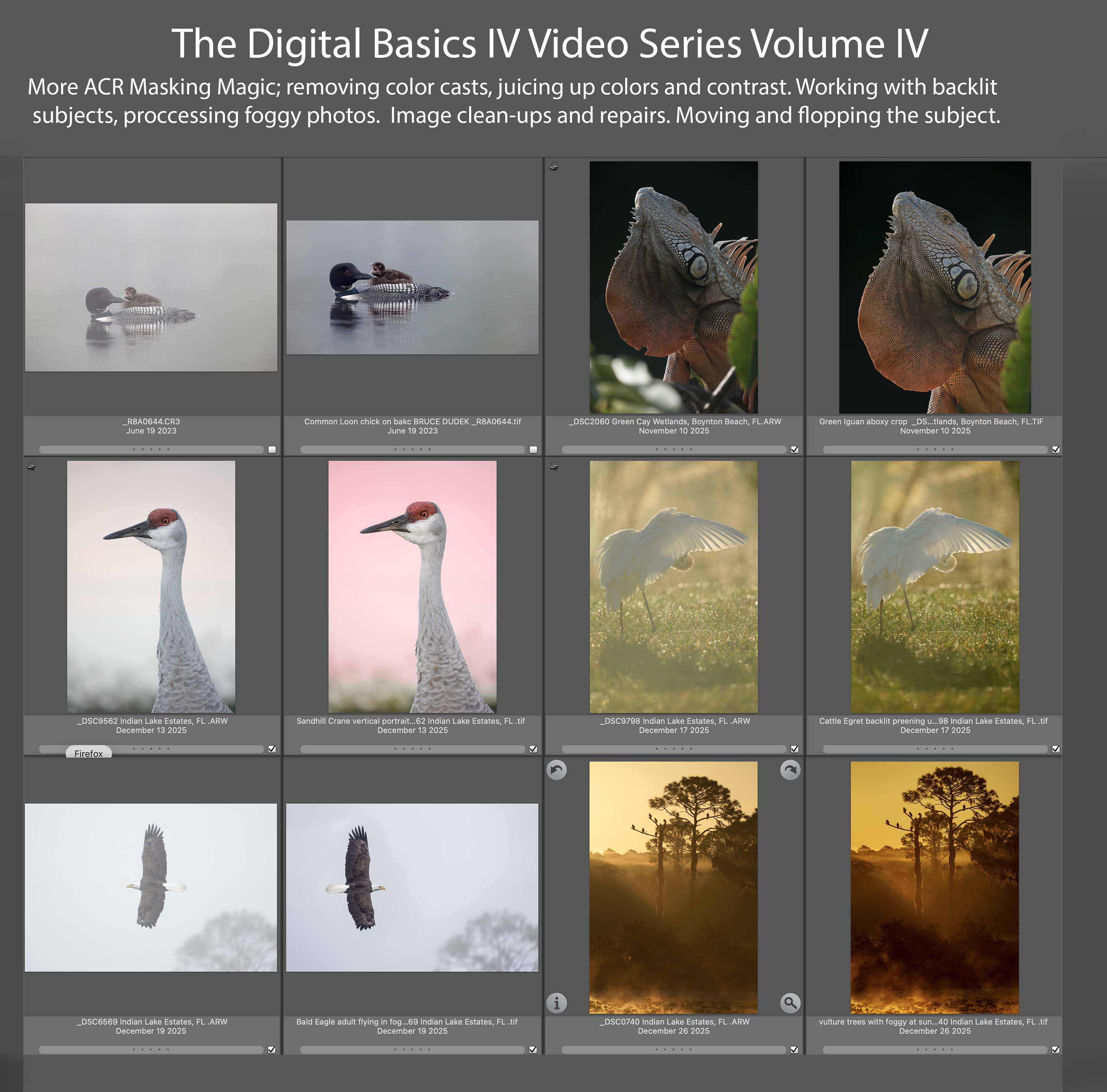 Volume I of the Digital Basics IV Video Series details the image optimizations of six images; it eliminates the confusion that resulted from the changes to AI Noise Reduction (under the Details tab) in the recent updates to Adobe Camera Raw (in both Photoshop 2025 Release 26.10.0 and the latest version of Lightroom). As you will learn in the Volume I video, the new interface represents a significant improvement as compared to those obtained with the Enhance dialogue box in previous versions of ACR. All the new stuff but for the use of the Point Color eye dropper to tame super-saturated colors during raw conversions is at least touched upon in Volume I, most of it in great detail. One hour, two minutes.
