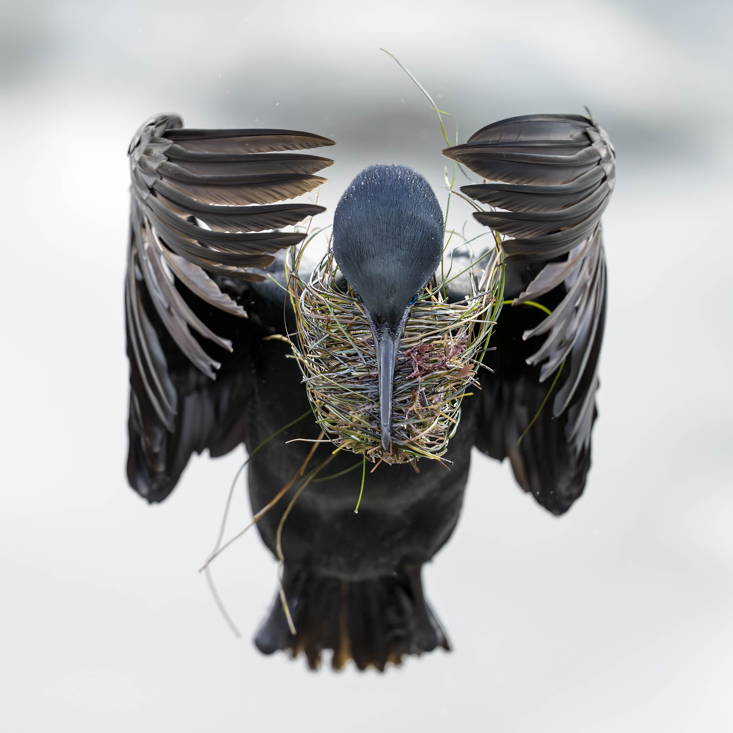 This image was also created by yours truly on 13 January 2026 at La Jolla, CA on the first San Diego Extended IPT. Standing on the sidewalk above the breeding shelf, I used the handheld Sony FE 300mm f/2.8 GM OSS Lens (Sony E) and The Latest Greatest Sony Flagship Body, the a1 II Mirrorless Camera. The exposure was determined via Zebras with ISO on the Thumb Wheel. ISO 3200: 1/3200 sec. at f/2.8 (wide open) in Manual mode. AWB at 3:56:25pm in the shade on a sunny afternoon. Tracking Zone/AF-C with Bird Eye/Face Detection enabled performed perfectly. Image #6: Brandt’s Cormorant braking to land with nesting material |