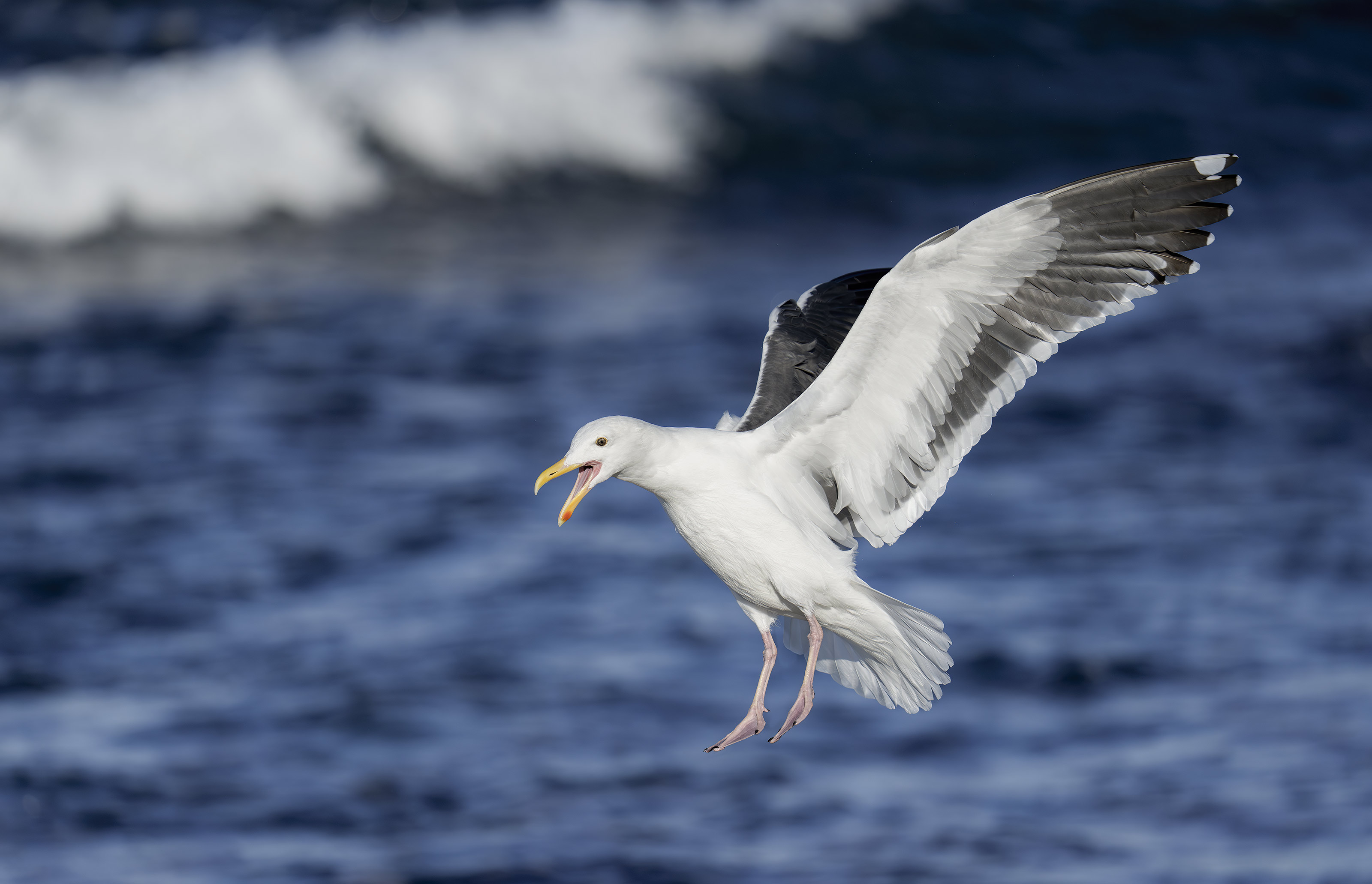 This image was also created on 10 January 2026 by yours truly at La Jolla, CA on the first San Diego Extended IPT. Standing on the beach at the low cliffs, I used the handheld Sony FE 200-600mm f/5.6-6.3 G OSS lens (at 400mm) and the The Latest Greatest Sony Flagship Body, the a1 II Mirrorless Camera. The exposure was determined using Zebra technology with ISO on the Thumb Dial. ISO 640. 1/5000 second at f/6.3 (wide-open) in Manual Mode. AWB at 8:49:59am on a sunny morning. Wide/AF-C with Bird-Eye/Face Detection performed perfectly. Click on the image to enjoy the larger, inexplicably sharper high-res version. Image #2: Western Gull rear flight shot