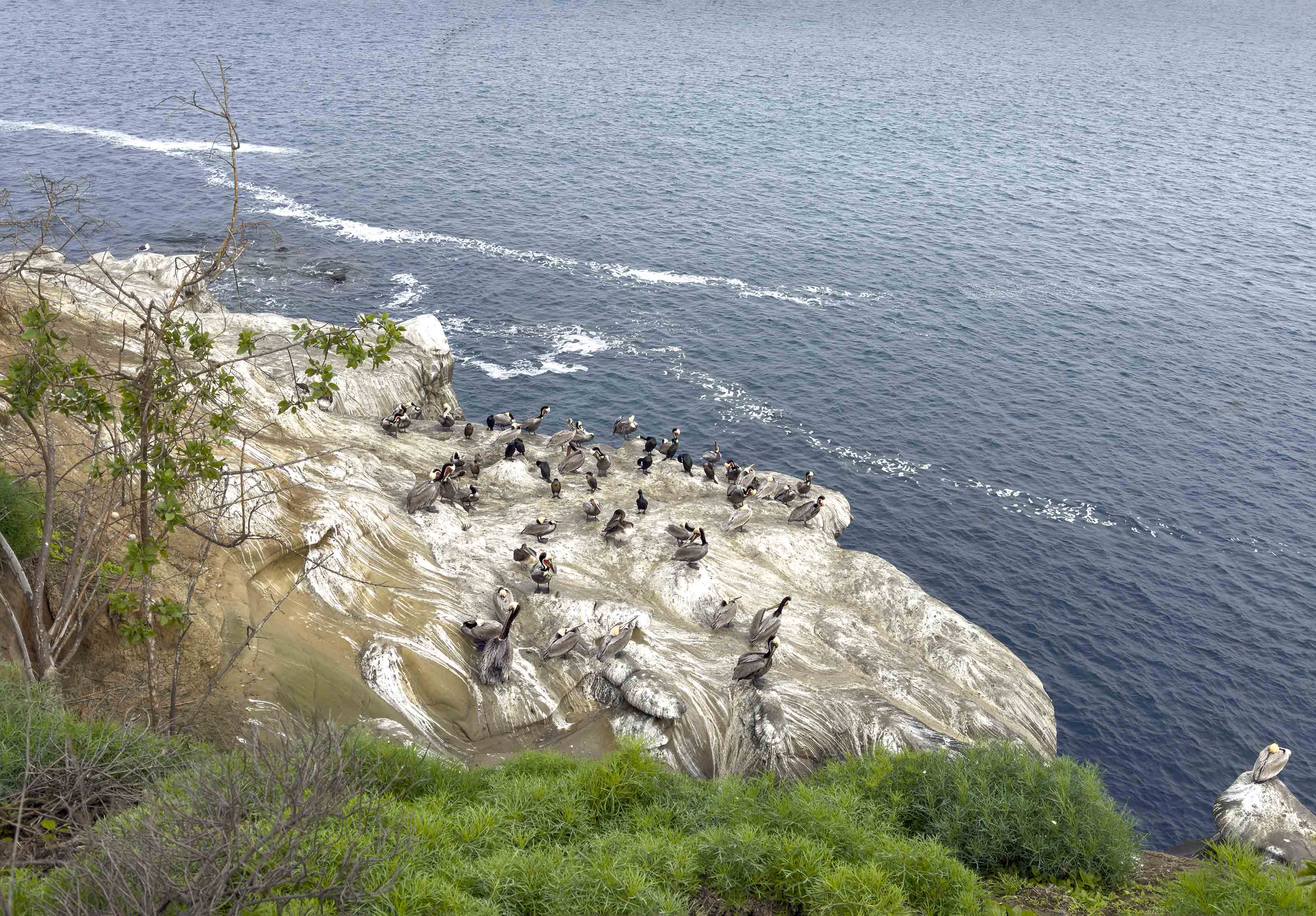 There is little person — they were called midgets when I was a kid, who has been photographing the pelicans at La Jolla for years. Note that today the term midget is viewed as derogatory when referring to someone with dwarfism. In any case, he likes to do close range cell phone selfies with pelican backgrounds. He is amazingly agile climbing over the railings (illegally?) and down onto the cliffs where the birds are roosting. In previous seasons he would climb down into the crevice at Goldfish Point and scare every pelican off the upper ridge with impunity. Lots of photographers screamed and cursed at him but he did not care. Nor did he change his behavior. And he would climb over the fences at the lower shelves and scare off every bird within minutes.
