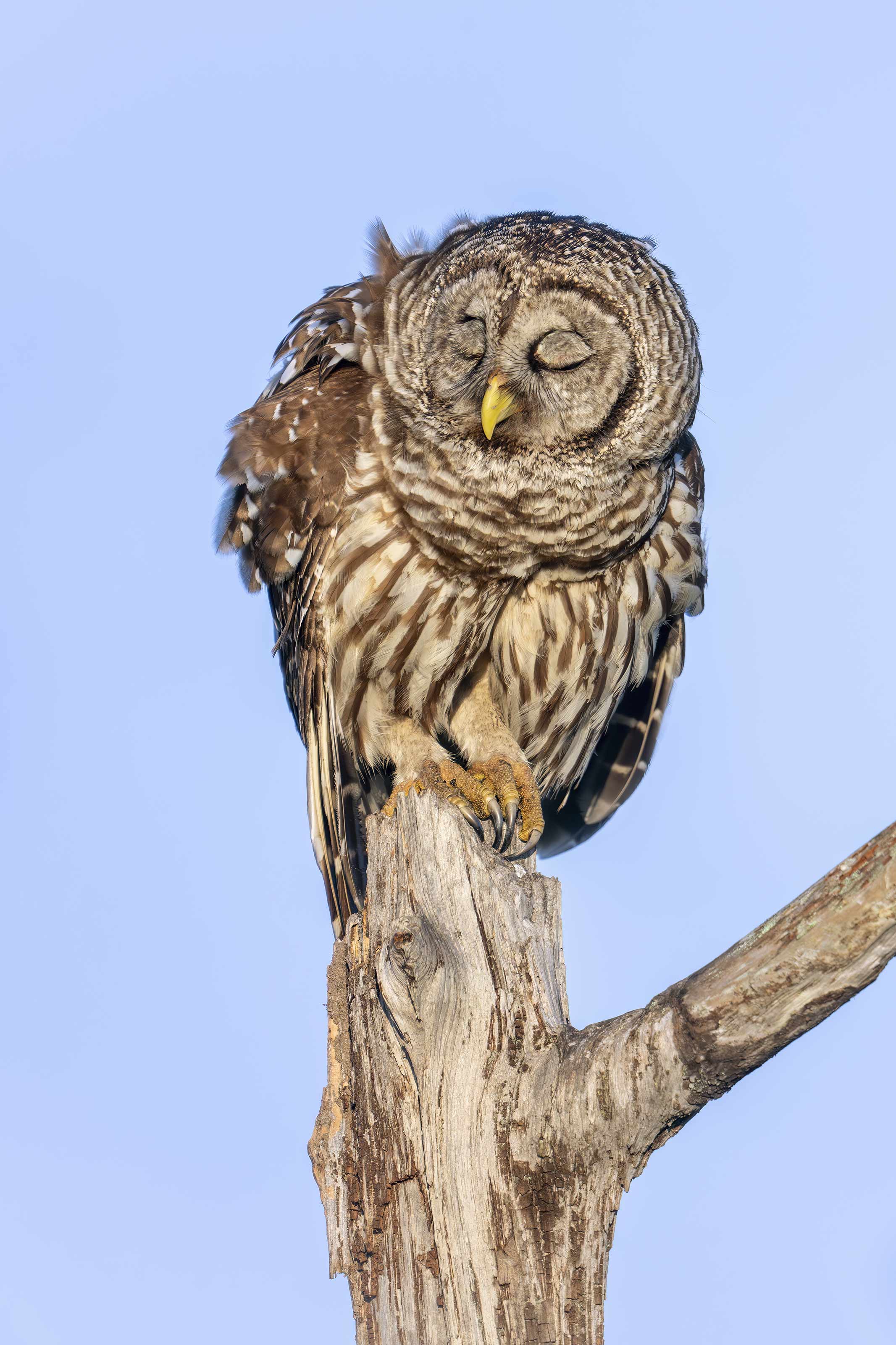 This image was created by yours truly on 15 March 2026 at Indian Lake Estates, FL. Seated in the front seat of my SUV (with Bob Eastman sitting behind me) I used the BLUBB-supported Sony FE 600mm f/4 GM OSS lens with the Sony FE 1.4x Teleconverter, and The Latest Greatest Sony Flagship Body, the a1 II Mirrorless Camera. The exposure was determined via Zebras with ISO on the rear dial. ISO 2000: 1/2500 sec. at f/5.6 (wide open). AWB at 8:14:59am on sunny morning. Wide AF-C with Bird-Eye/Face Detection performed perfectly. Click on the image to enjoy the larger, inexplicably sharper and warmer high-res version. Image #2: Barred Owl on Bob’s North Perch looking coy